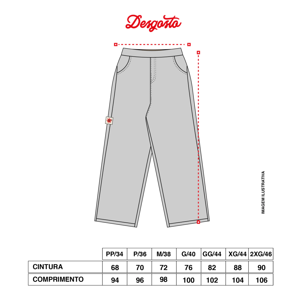 O elástico na cintura facilita na hora de vestir e permite melhor adaptação ao corpo, sem abrir mão do caimento reto. Uma peça feita pra aguentar a rotina e te acompanhar no dia a dia.